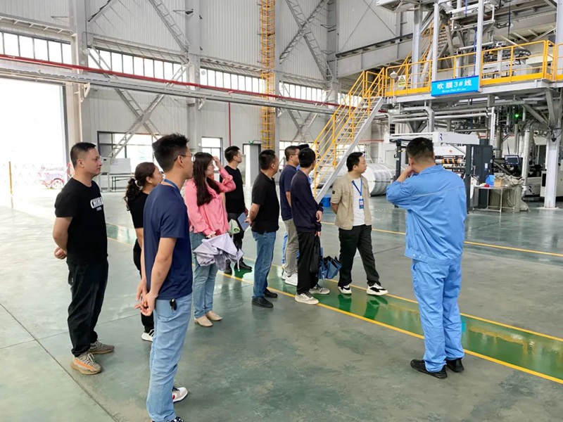 參觀完百利宏文化展廳,一行人驅車來到了位于大亞灣西區的第二站——宏晟科技。生產工程師鐘小強帶領大家參觀重載膜生產車間,實地為大家講解重載膜產品及生產工藝,耐心解答大家的問題。